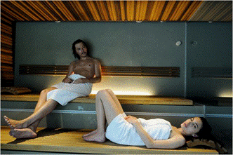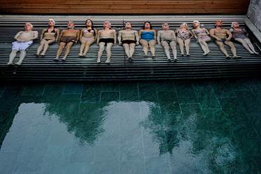 その水につかったセレブたちは、世俗の苦労を洗い流して清められるかのように、自分を癒そうとする。