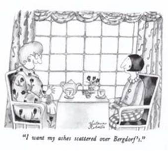 ドキュメンタリー映画『ニューヨーク バーグドルフ 魔法のデパート』の原題は、「私の遺灰をバーグドルフに撒いてね」 (“Scatter my Ashes at Bergdorf’s”)ともの騒がせなものだが、『ニューヨーカー』誌掲載のビクトリア・ロバーツの漫画で年配の女性たちがつぶやく言葉からとられた。